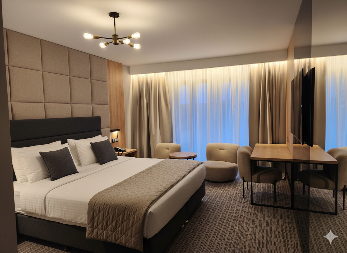 wszystkie o wysokim standardzie wykończenia, klimatyzowane, wyposażone w sejf, minibar, smart sterowanie oświetleniem i temperaturą, telewizory 65″ z Chromecast.